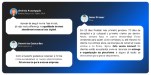 Esses exemplos ilustram como grandes marcas já perceberam a necessidade de um atendimento excepcional e o mesmo pode ser aplicado à sua consultoria, como visto no case da Templum, ao integrar canais de comunicação mais eficientes e estruturados focados na centralização do atendimento. Com o Evolutto as suas interações ficam em um só lugar, garantindo um registro claro e acessível de todas as consultas e soluções – ao contrário de ferramentas convencionais como o WhatsApp, que muitas vezes fragmentam a comunicação. Veja abaixo como clientes Evolutto ganharam esse diferencial competitivo e estão se destacando no mercado: