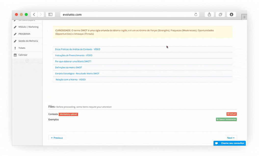 Consultoria digital precisa promover a transformação do cliente, otimizando o seu tempo, o seu ativo mais valioso! Através de ferramentas de cronograma automatizado, com conteúdos auxiliares de grandes técnicos de mercado, organizados em uma estrutura com começo, meio e fim definidos. Funcionalidades desenvolvidas por consultores para o dia a dia de gestores, consultores e clientes. Conheça a plataforma que vai levar seu conhecimento mais longe, Evolutto é a evolução que faltava para a melhor consultoria que você conhece: a sua própria.